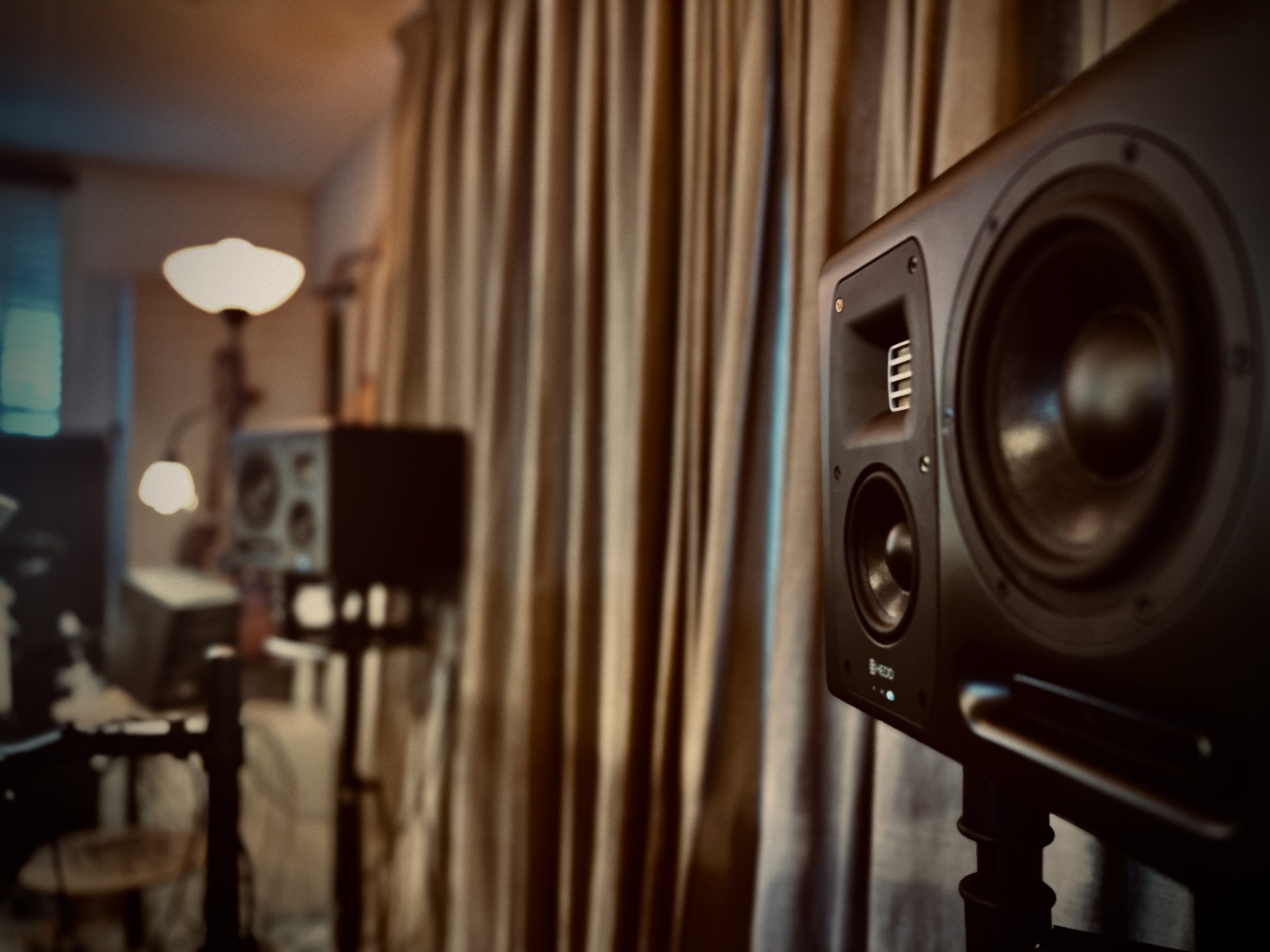 De studio is voor het mixen uitgerust met goede kwaliteit monitor speakers van Hedd.